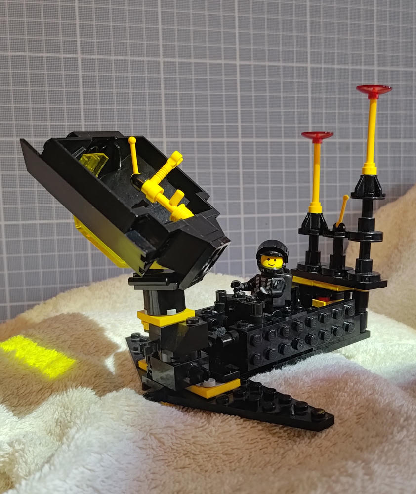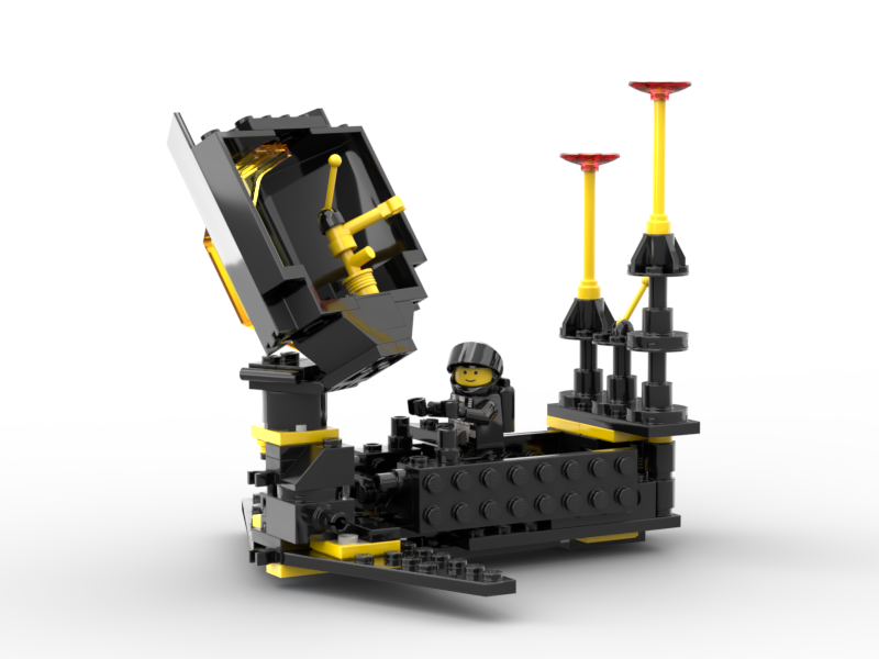 The construction of the Instigator is rickety and fragile. It would never pass even the barest standards of safety or build quality. But Blacktron was not founded on safety. What the Company lives on, is first and foremost - information. And as far as signal gathering and emitting, the Instigator with its dense array of antennas simply has no equals. The core sticking point is the unique, fractal-shaped receiver of its main dish. Despite long years of research, none of the scientists investigating it managed to copy its singularly powerful characteristics without also reproducing the obnoxious rest of the module. The saving grace is the fact, that the Instigator is (barely!) compatible with the new modular system of Blacktron connectors, as used on their flagship Renegade spaceship. Based on what is known, this was a conscious design constraint, intended to allow escaping the asteroid by attaching the machine to any intercepted Company spacecraft. After realizing how much cost was sunk into trying to fix the Instigator, the Blacktron High Command promptly shut down any further funding, disbanded and reassigned the researchers to projects deemed more productive, and swiftly rubber-stamped the original construction into the core fleet. The module has since become the subject both of loathing and pride among generations of Company agents.