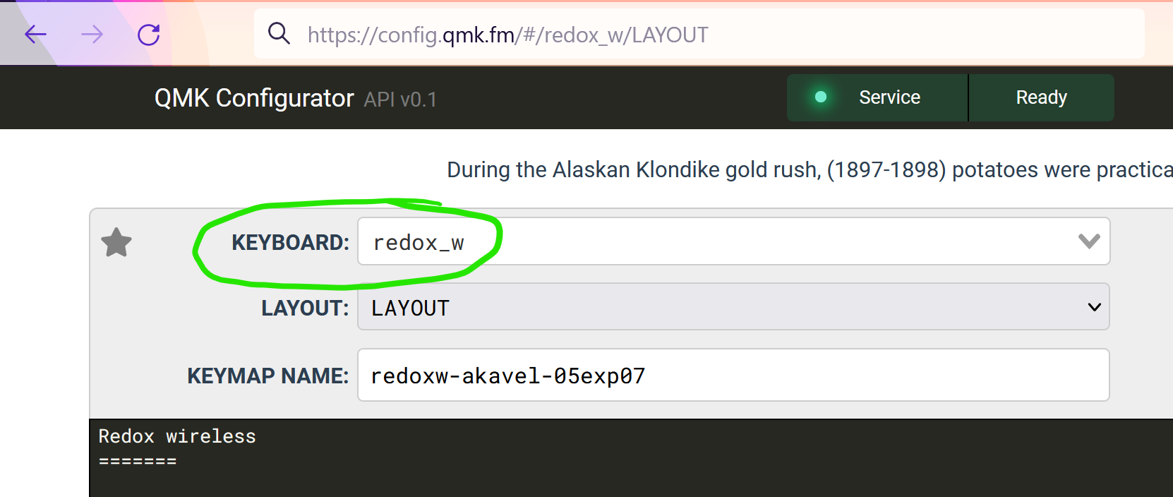 keyboard there — this is the codename used throughout the QMK set of tools to refer to the Redox Wireless keyboard.